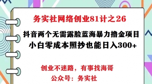 务实社网创81之24:抖音2个无需露脸蓝海暴力项目,小白零成本照抄也能日入300+