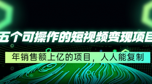 五个可操作的短视频变现项目:年销售额上亿的项目,人人能复制