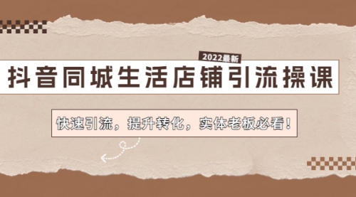 抖音同城生活店铺引流操课:快速引流,提升转化,实体老板必看!