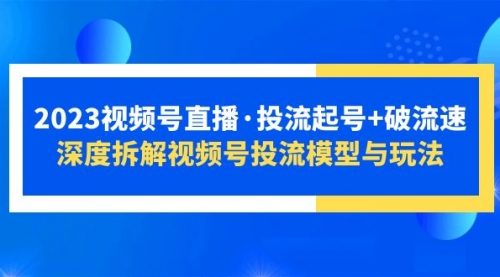 2023视频号直播·投流起号+破流速,深度拆解视频号投流模型与玩法