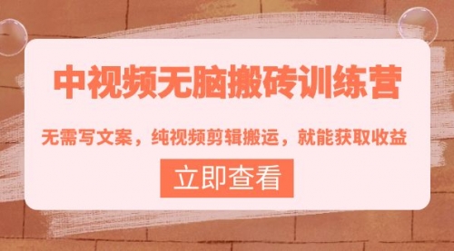 中视频无脑搬砖训练营:无需写文案,纯视频剪辑搬运,就能获取收益!