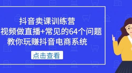抖音卖课训练营,短视频做直播+常见的64个问题教你玩赚抖音电商系统