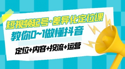 2023短视频起号·差异化定位课:0~1做懂抖音(定位+内容+投流+运营)