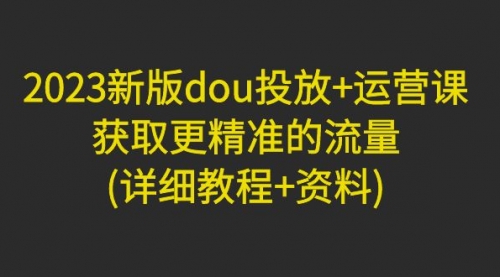 2023新版dou投放+运营课:获取更精准的流量(详细教程+资料)