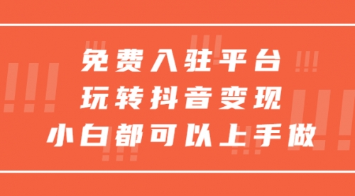 免费入驻平台,玩转抖音变现,小白都可以上手做