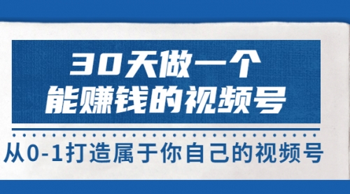 30天做一个能赚钱的视频号,从0-1打造属于你自己的视频号(14节-价值199)