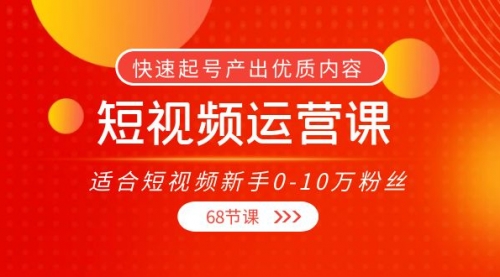 短视频运营课,适合短视频新手0-10万粉丝,快速起号产出优质内容(68节课)