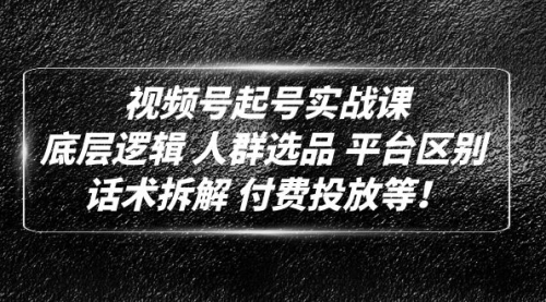 视频号起号实战课:底层逻辑人群选品平台区别话术拆解付费投放等!