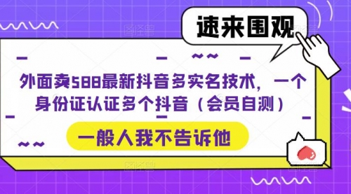 外面卖588最新抖音多实名技术,一个身份证认证多个抖音(会员自测)
