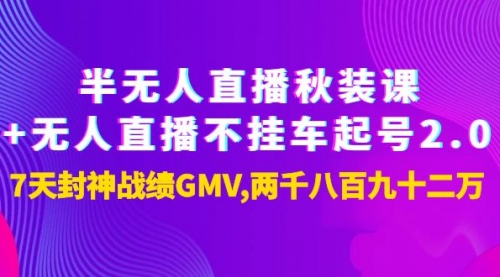 半无人直播秋装课+无人直播不挂车起号2.0:7天封神战绩GMV两千八百九十二万