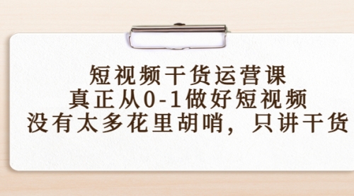 短视频干货运营课,真正从0-1做好短视频,没有太多花里胡哨,只讲干货