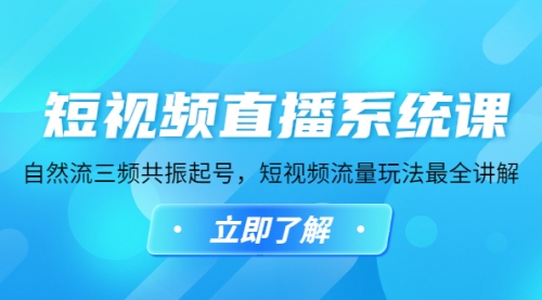 短视频直播系统课,自然流三频共振起号,短视频流量玩法最全讲解