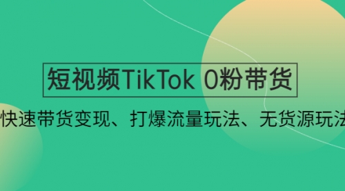 短视频TikTok0粉带货:快速带货变现、打爆流量玩法、无货源玩法!